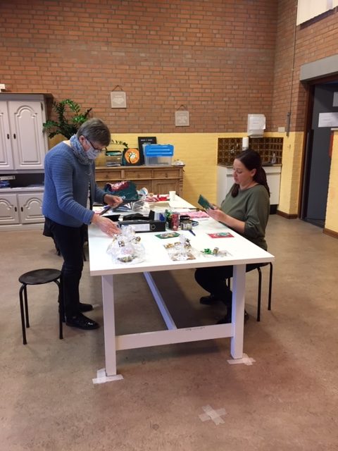 De middag dat ik er was, waren er o.a. een oma met haar kleinkinderen. Verder een brugklasser en een paar handige dames. Onder het genot van een bekertje limonade, koffie of thee werd er flink doorgewerkt onder leiding van een medewerkster van Care+. Er hing een gezellige sfeer. Samen met de kerstwensen zullen de hangers verdeeld worden over de zorgcentra.