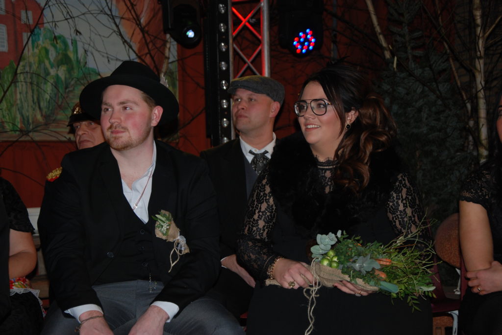 Als laatste kwamen de bruid Femke en de bruidegom Vince het podium op. De aanwezigen werd nog gevraagd of ze konden instemmen met het voorgenomen huwelijk in de onecht. Daarop was het antwoord uit de zaal volmondig en luidt JA. Ook de gemeente secretaris had in alle gemeentelijk paperassen niets kunnen vinden dat een onecht huwelijk in de weg zou kunnen staan.