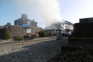 De vlammen hadden langs de geven van het huis toch het dak weten te bereiken.