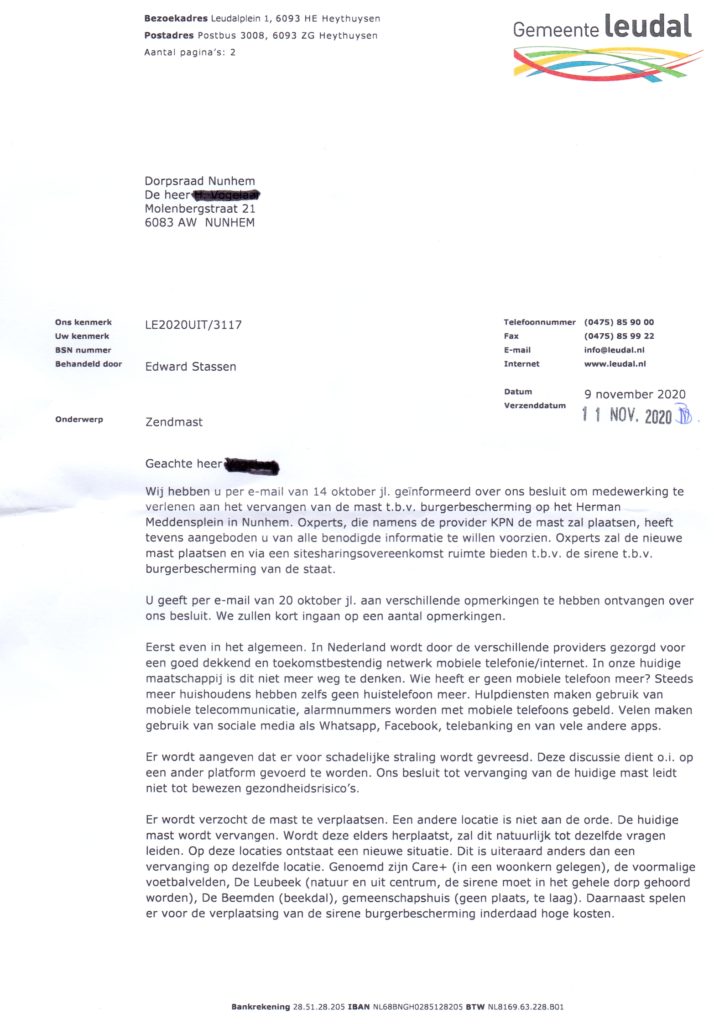 Op 14 oktober jl. ontvingen wij van de Gemeente Leudal een email met bijlage waarin te lezen was dat eind 2021 een vervanging van de sirenemast op het Herman Meddensplein gaat plaatsvinden. Hierbij werden wij uitgenodigd om “gebundelde vragen/opmerkingen” uit het dorp aan te leveren.