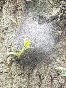 Ditmaal een foto die een schaduwkant van de zomerperiode laat zien. Een foto van onze actieve inzender Ingrid Sauren die schrijft “vandaag tijdens het wandelen door het Leudal is mij opgevallen hoeveel nesten van de eiken processierups ik ben tegengekomen. Misschien even een waarschuwing op de website zetten!”.